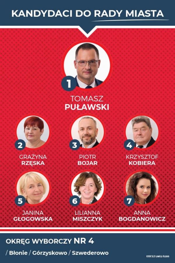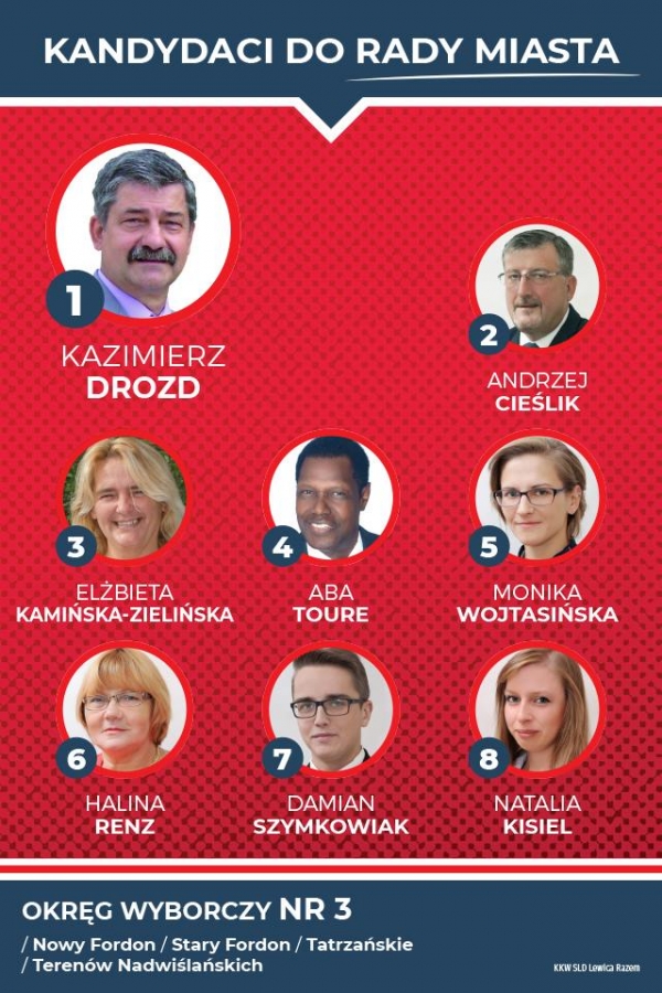Prezentujemy kandydatki i kandydatów startujących w ramach Koalicyjnego Komitetu Wyborczego SLD Lewica Razem do Rady Miasta Bydgoszczy, kandydatkę na urząd prezydenta Bydgoszczy oraz listę do Sejmiku Wojewódzkiego w okręgu nr 1 - Bydgoszcz.